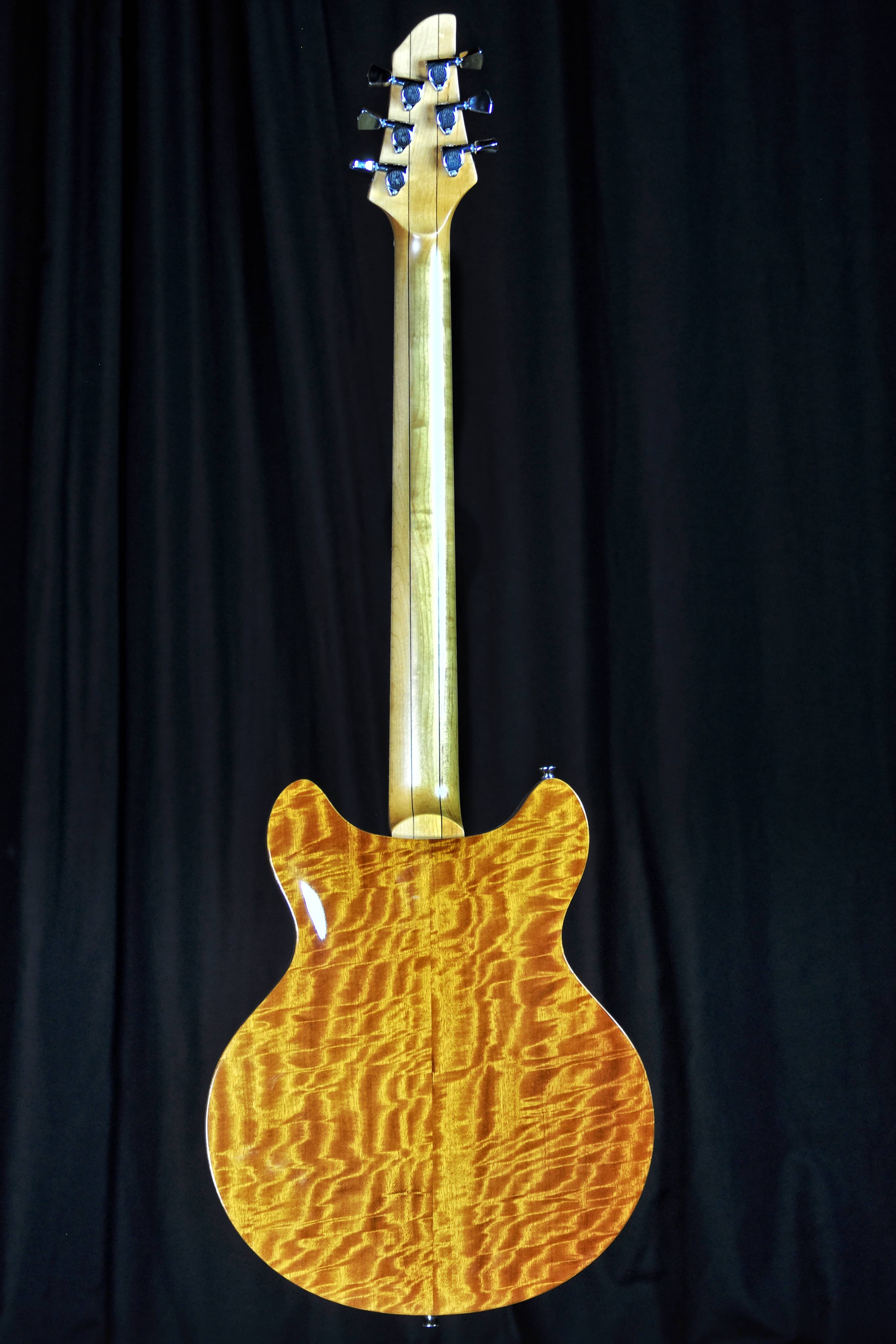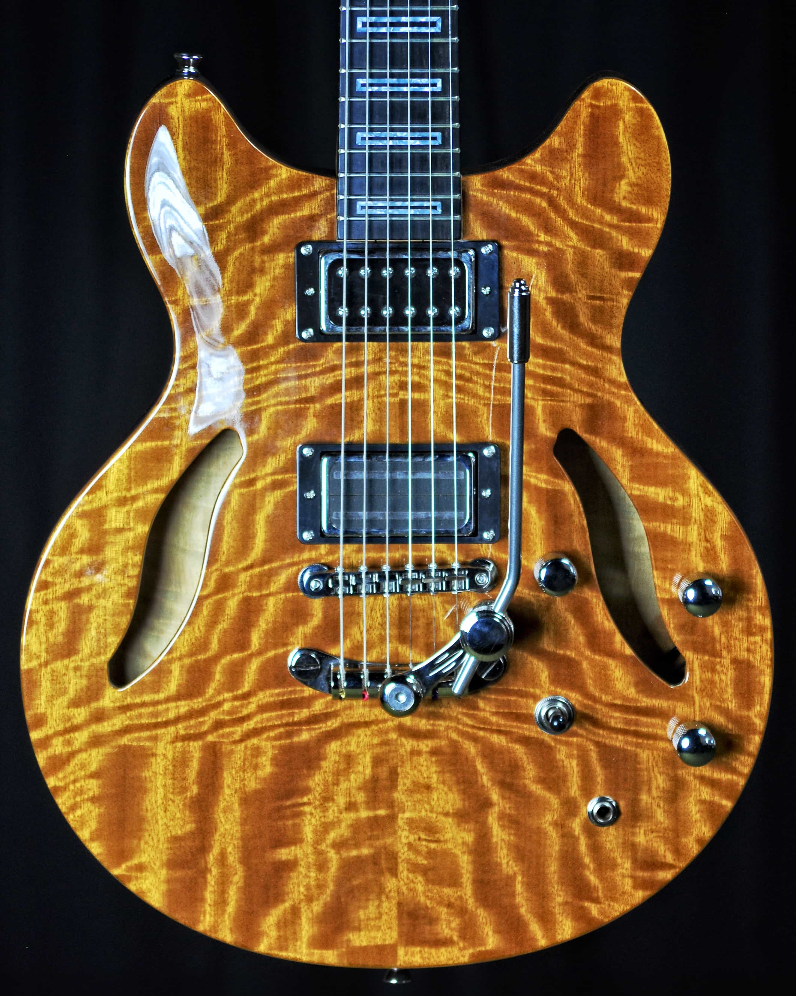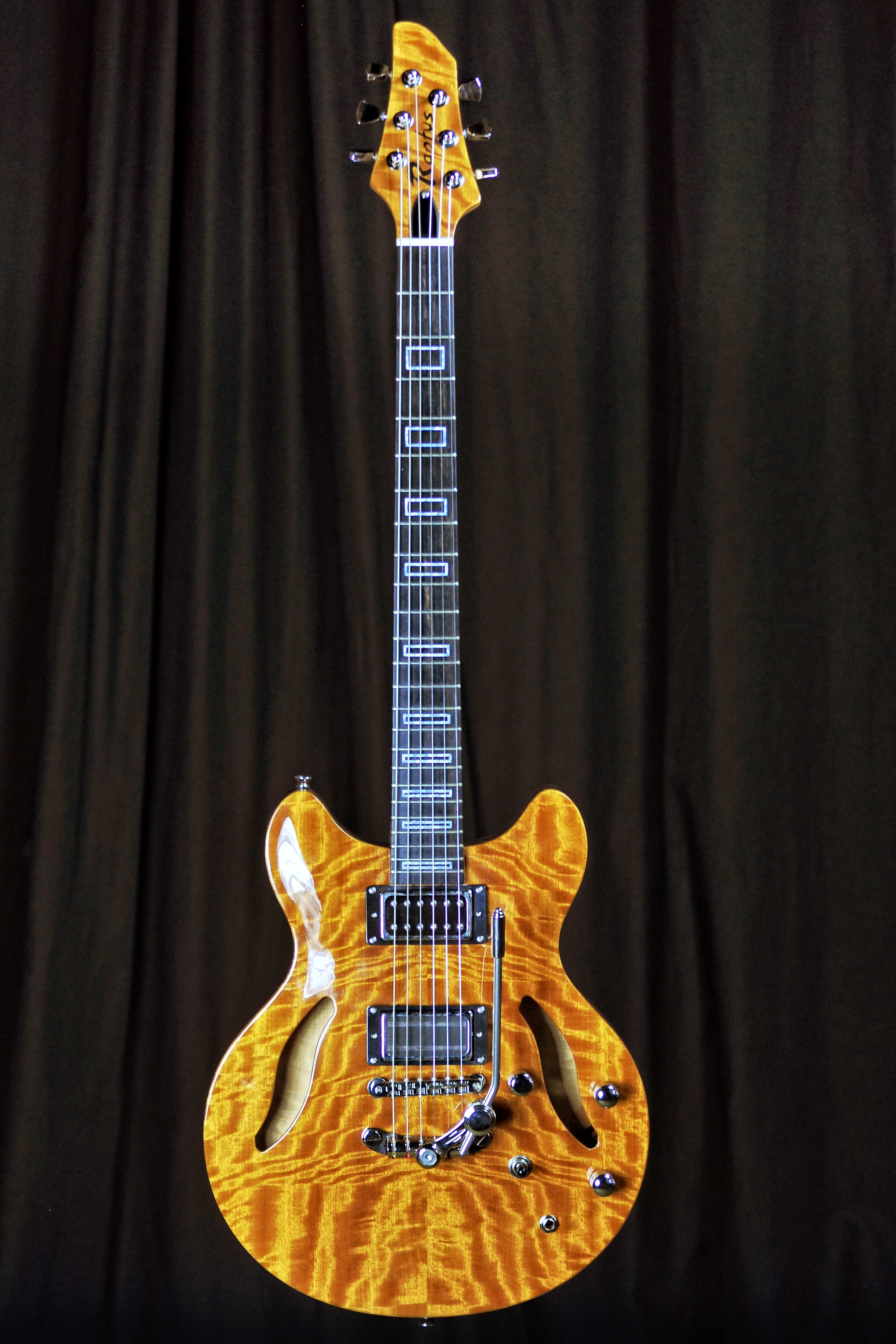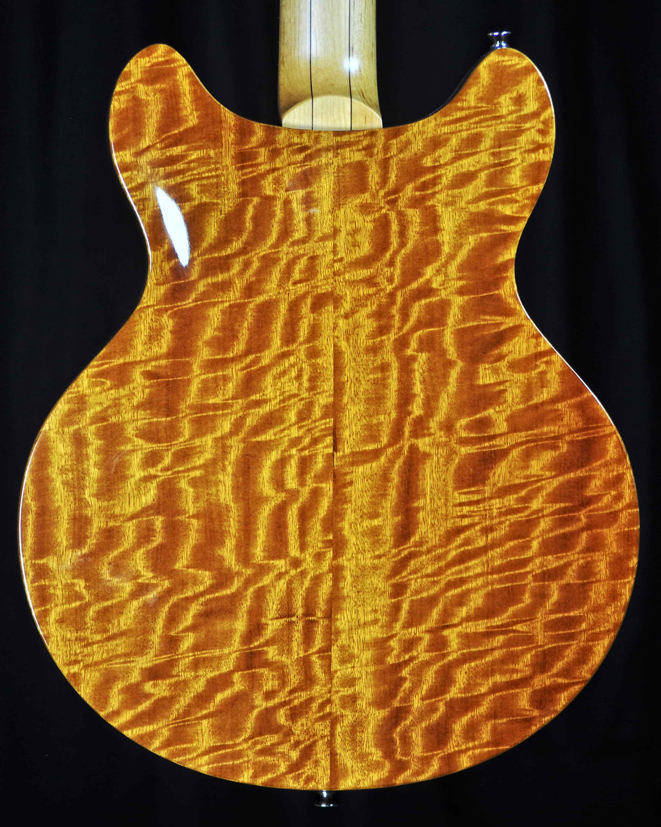 | BODY: | Mahogany, hollowbody with arched Movingui Top and Back |